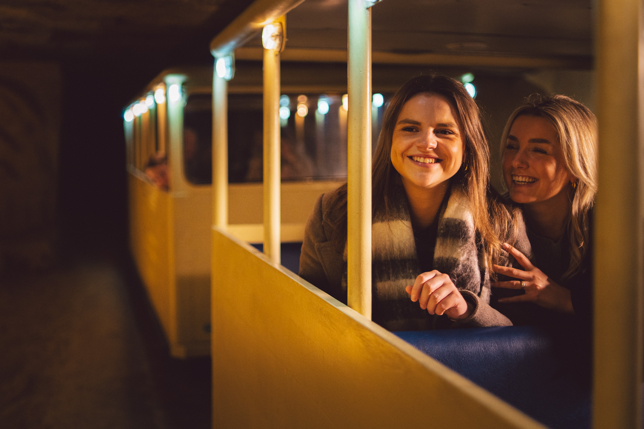Slenter door de gangen en voel de adem van hen die hier ooit leefden of laat je meevoeren naar de kern van de Cauberg met onze trein. Want wat van buiten verborgen lijkt, komt binnen langzaam aan het licht. Durf jij te kijken?
