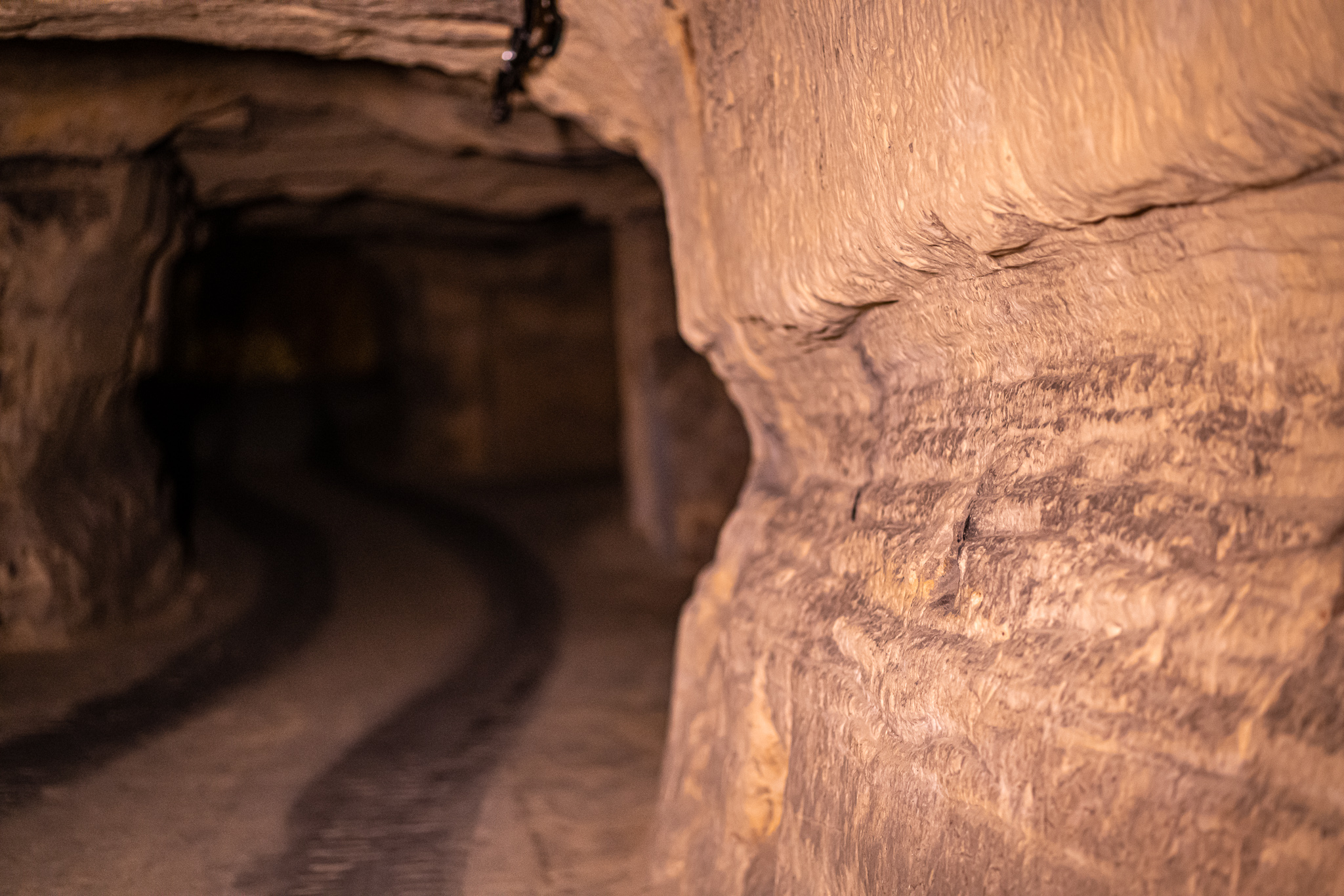 The marlstones were initially intended primarily for churches, castles and other buildings belonging to the nobility and the clergy. Later, the marl was also used by the local population. If you look closely, you can still see the work of the stone cutters in the walls and ceilings today. Straight lines reveal where the chisels were used, and the smooth walls show the work of the saws. There are also places where stone cutters carved their accounts into the marl walls. In this way, the passages tell not only the story of the cave, but also that of the stone cutters who created it centuries ago.